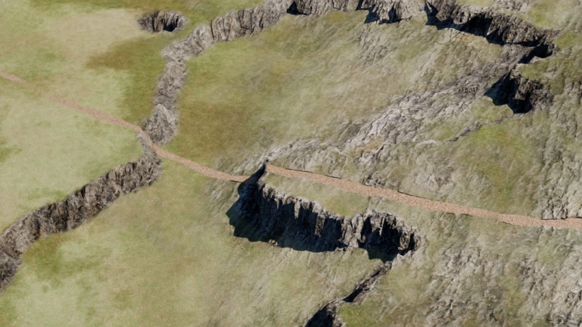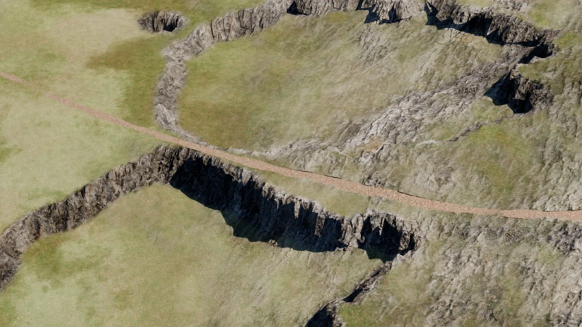 - Follow: The terrain will follow the path but not be deformed to match it, like a dirt path.